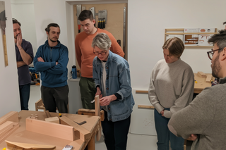Under careful guidance, your group will work with both hand and power tools to cut and shape solid timber, before joining the legs to the seat using traditional wedged mortise and tenons with walnut wedges for strength and contrast. By the end of the day, everyone will have completed the entire piece from start to finish and will take home their finished stool, a functional and timeless piece of furniture made by their own hands.